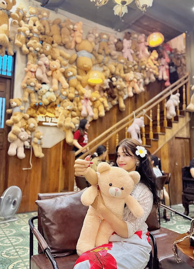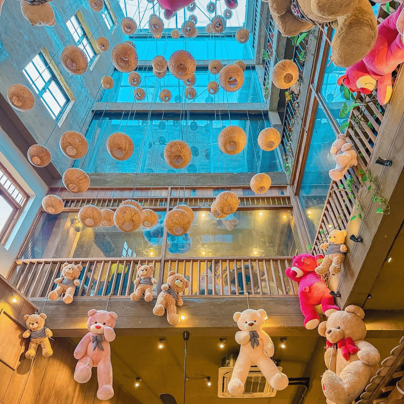 Continue to a teddy bear-inspired café, where fun décor and giant plush companions make for playful photo opportunities while you enjoy a refreshing drink.