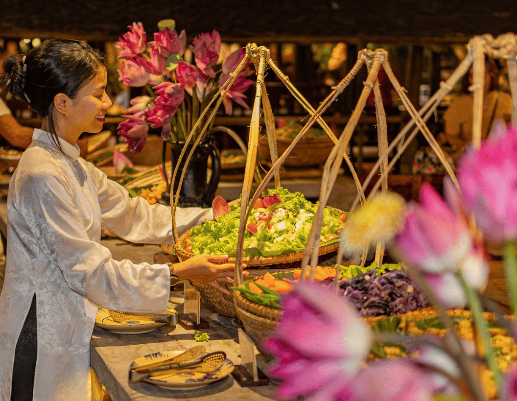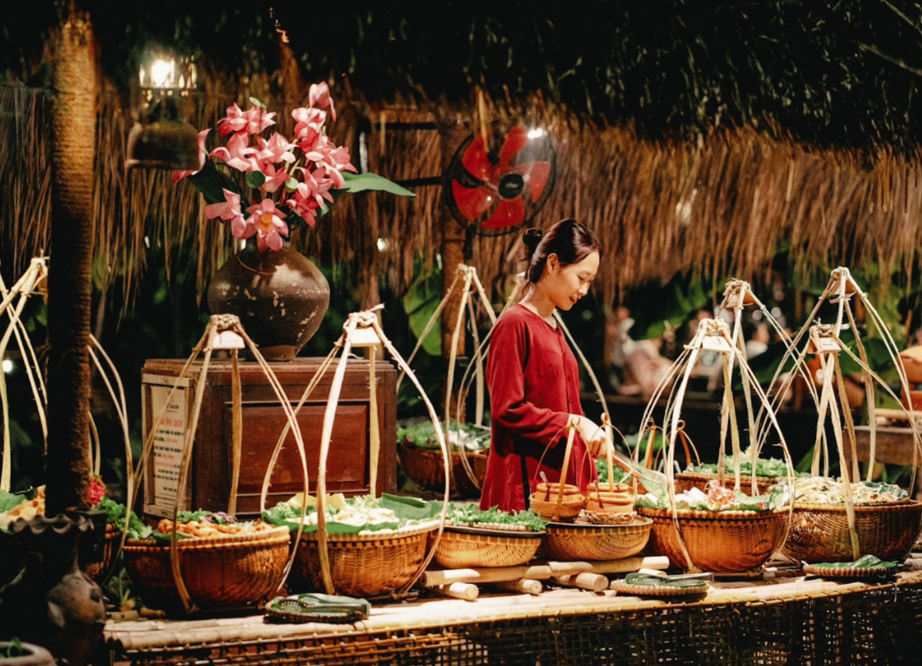 Enjoy live cultural performances, folk games, and traditional craft displays. Relax in a charming village-style setting surrounded by lotus ponds, bamboo, and rustic architecture.