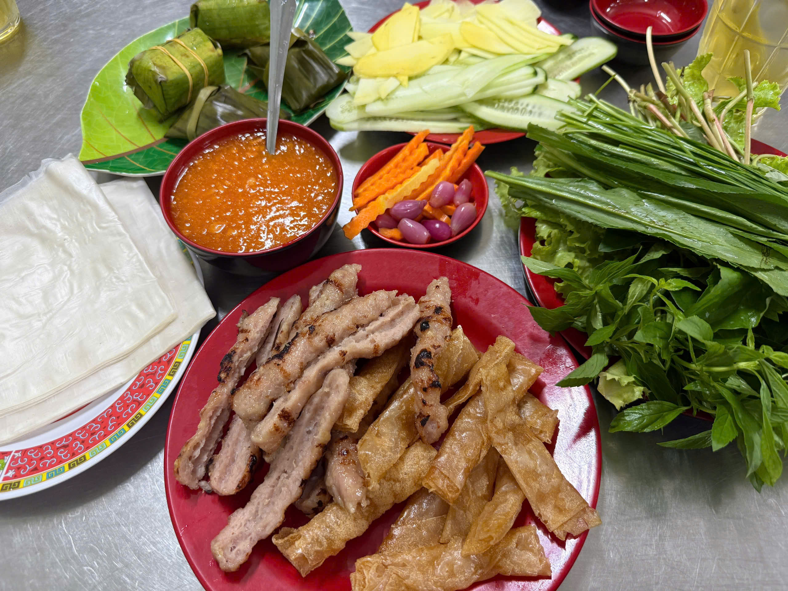 Kick off your tour with a classic: Nem Nướng Nha Trang, grilled pork skewers served with rice paper, crunchy greens, and a rich dipping sauce. This dish is a staple of local cuisine and a crowd favorite.