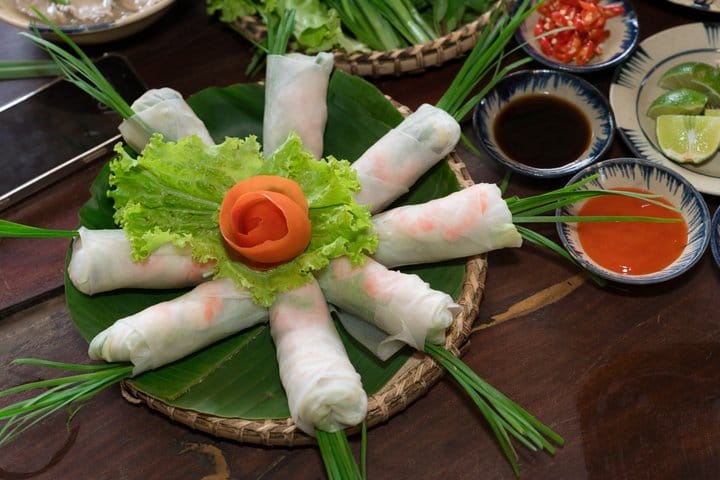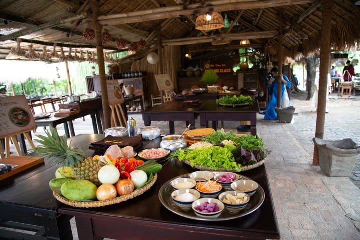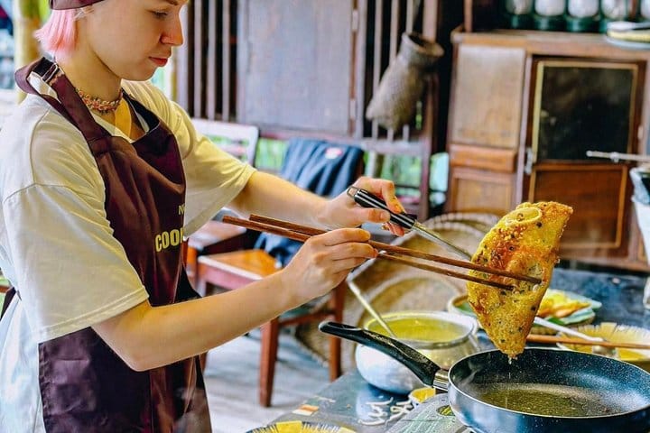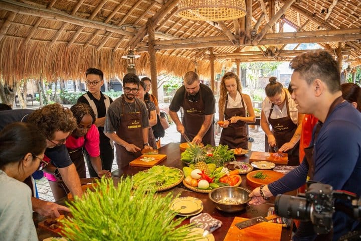 Experience the authentic flavors of Vietnam on this immersive cooking journey. Start with a bike ride to a bustling local market, where you’ll explore vibrant stalls and select fresh ingredients like a local. Back at the venue, pick herbs from an organic garden before learning to cook iconic dishes such as Goi Cuon, Pho, and Banh Xeo with an expert chef. Enjoy the meal you’ve created and connect with fellow travelers, then end your experience with a visit to a traditional craft village, discovering local handmade products.