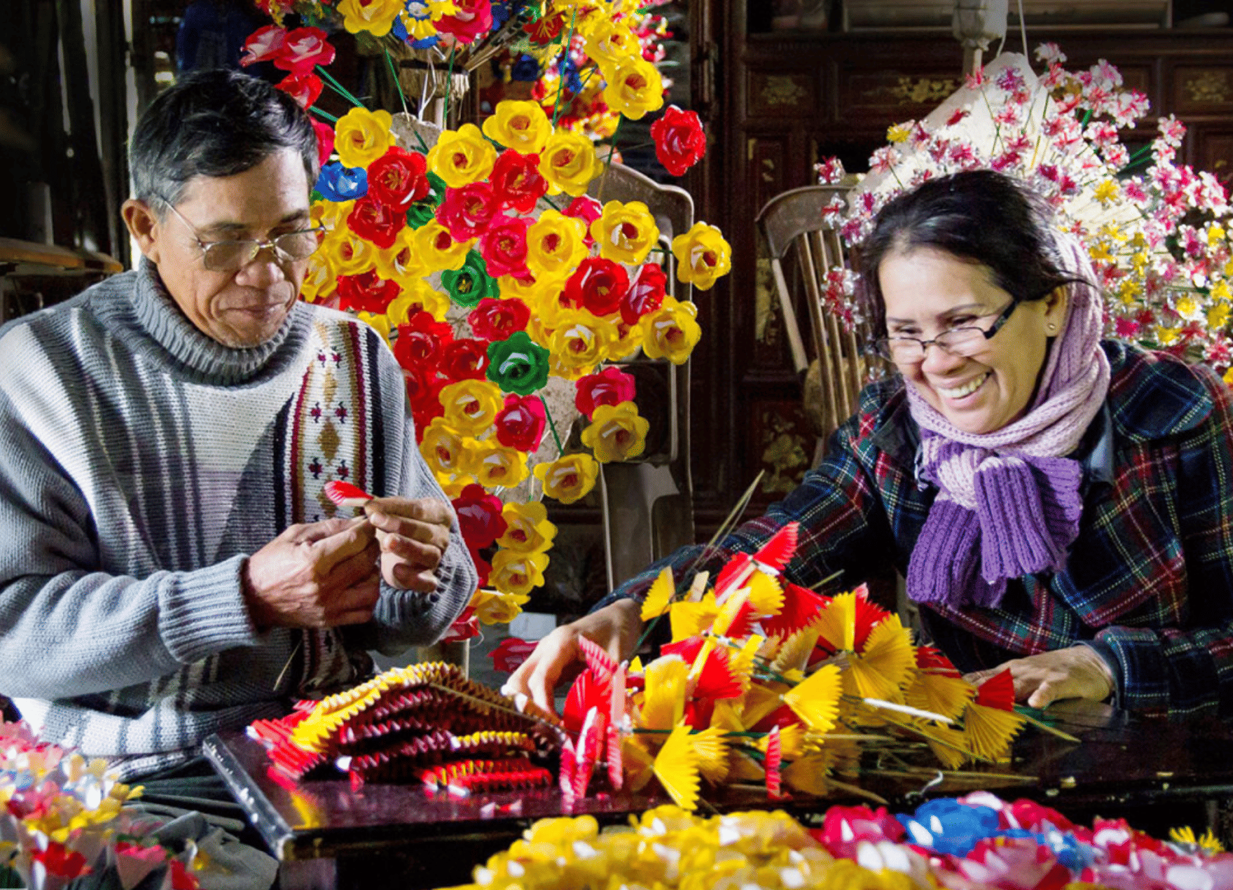 Create your own paper flowers in a workshop led by a local artisan in Ho Chi Minh City. Immerse yourself in the poetic spirit of Hue and take home a handmade flower as a unique memory.
